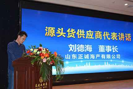 山东正诚海产有限公司刘德海董事长代表源头食品供货商、山东万泽冷链物流股份有限公司高廷总经理代表食品物流商、东营绿色餐饮餐饮商会唐金虎会长代表终端食品采购商分别在发布会上发言。他们对中国食品谷中凯智慧冷链物流园生鲜食品行业全新采购模式表示赞同和欢迎,一致认为所发布的全新模式通过集中采购、分散销售,为食品终端经营健康发展发挥积极作用,为消费者提供了安全健康放心的产品,将积极参与共同打造一个有关共同愿景、运作高效、资源共享的平台。